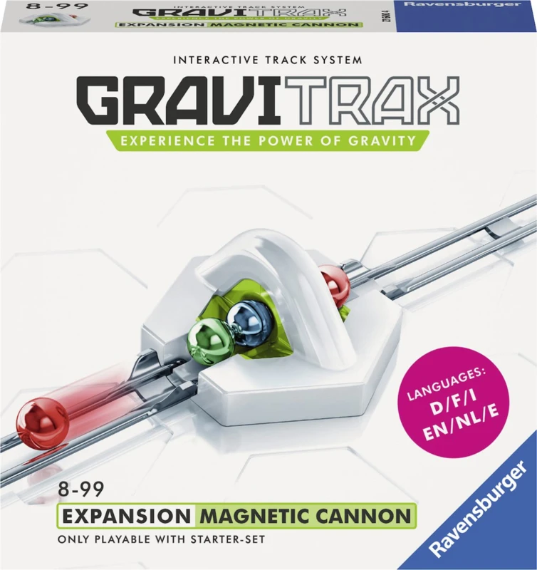 Met de talrijke uitbreidings-sets zoals dit magnetische kanon wordt het vrije bouwen en construeren van het interactieve kogelbaansysteem GraviTrax® elke keer nog interessanter en spannender! Meer mogelijkheden – meer plezier!
